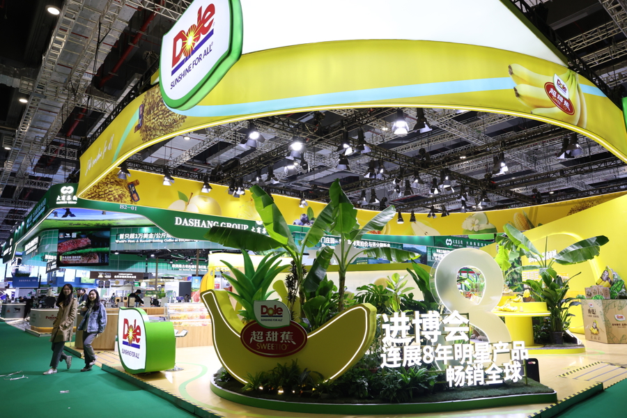 全球百年果蔬品牌都乐作为连续八年参展的进博会“全勤生”,今年进一步扩大展台面积,携都乐超甜蕉、金菠萝、牛油果、蓝莓、泰国香水椰在内的上百款明星果蔬,打造出“果力无限”概念展台。