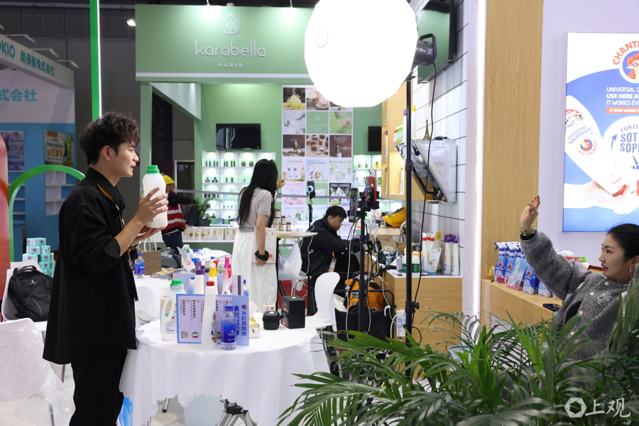 意大利家庭清洁龙头品牌大公鸡管家,布展完成后,3日和4日便在现场开启直播销售,向海内外消费者传达参加进博会喜讯,同时就新品和主打产品给与优惠酬宾。