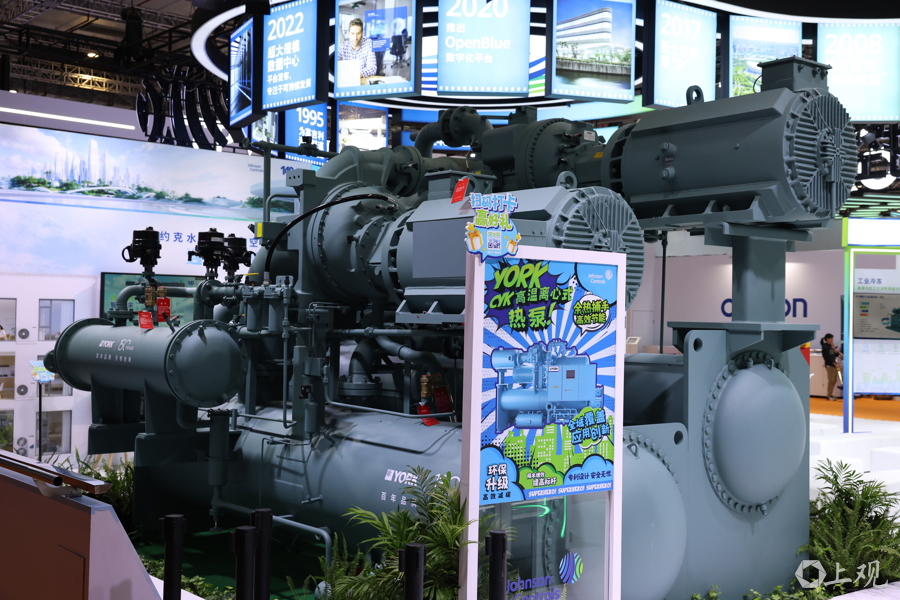江森自控全球首发约克CYK高温离心式热泵机组,促进工业领域余热高效回收。据介绍,这套机组采用双压缩机独立变频控制技术,结合智能控制算法,相较传统燃气供热方式,可降低供热能耗超30%。